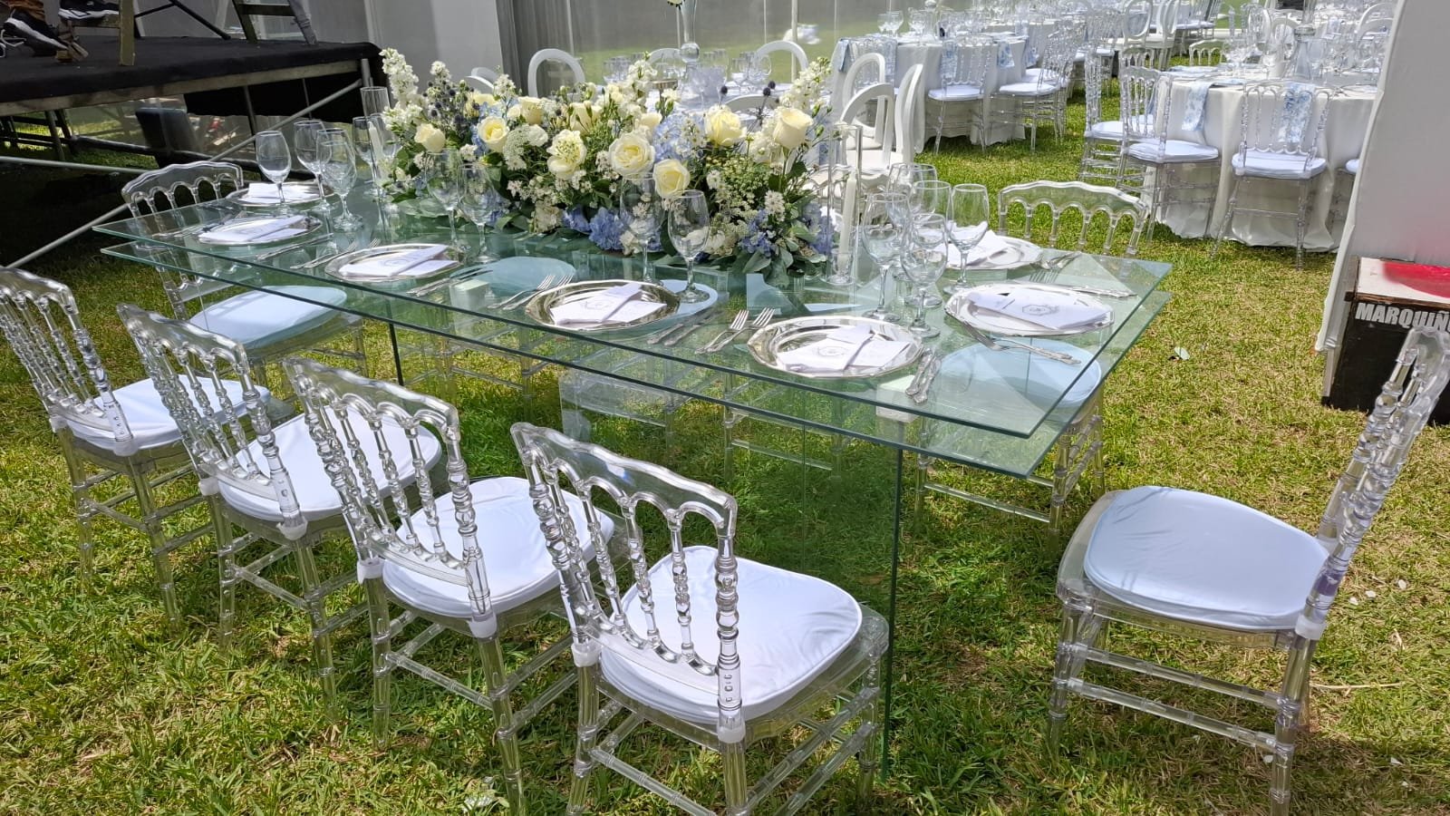 Haz que tu evento brille con luz propia. ¡Cotiza hoy mismo el alquiler de tus sillas acrílicas y asegura la elegancia de tu gran día!